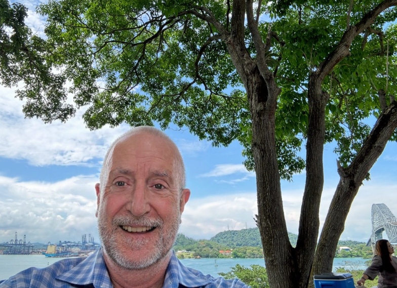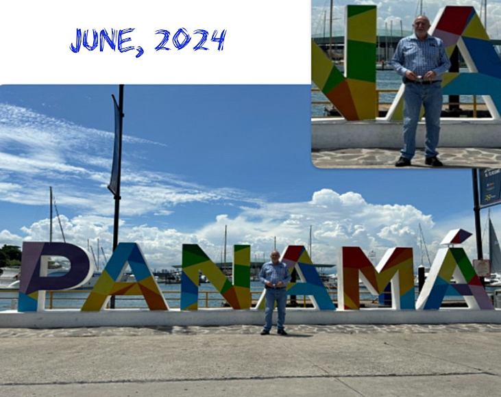 June, 2024: At the American Bridge, Panamá Canal, on a quick visit to Bogotá, Colombia, and Panamá City, Panamá, and then at Panamá's famous tourist sign near Amador Causeway.