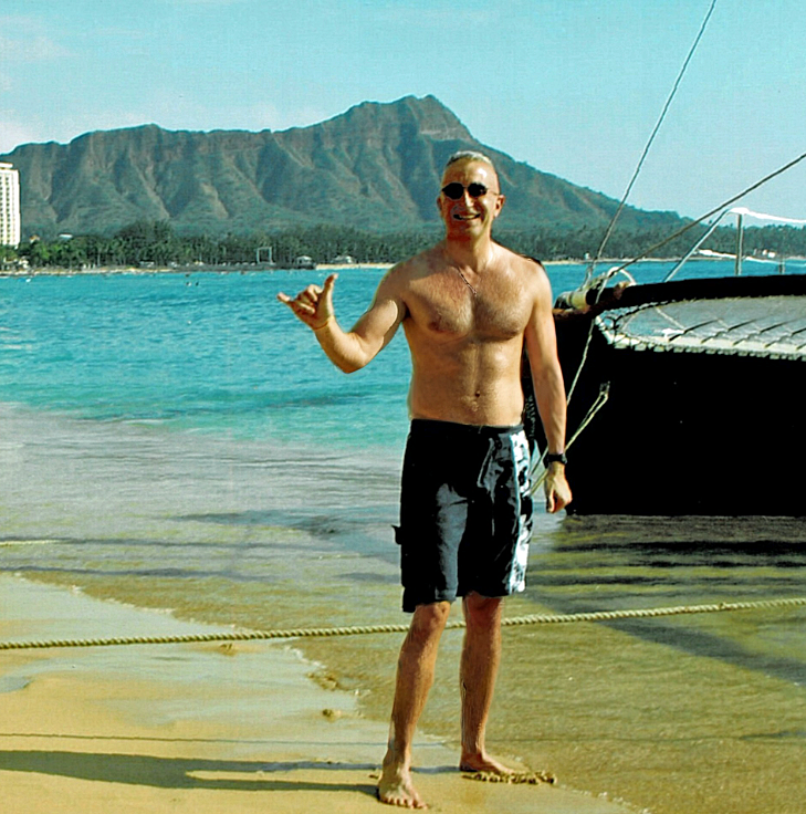 Some Hawaiian Christmases, Getting Off a Waikiki Catamaran about December 2003, Atop Diamond Head, O'ahu, December 23, 2012, and back up there shirtless, December 26, 2014