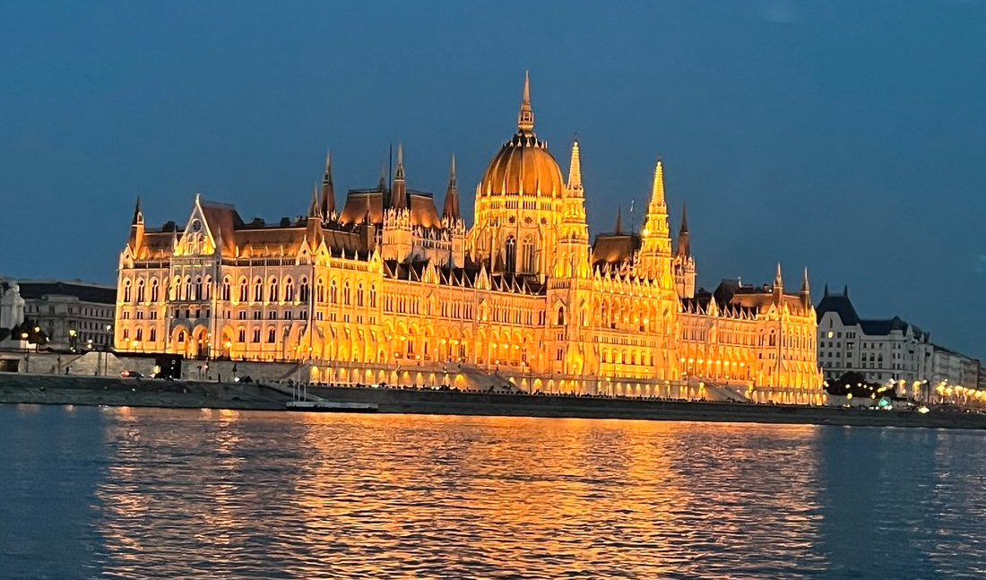 Summer trip to Budapest, Hungary, July, 2023: a sunset Danube River cruise by the Hungarian Parliament